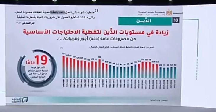 وأضاف خلال كلمته في المؤتمر الاقتصادي، أن معدل الدين إلى الناتج المحلي الإجمالي كان يتخطى 100% منذ 30 عاما، لكنه تراجع في الوقت الحالي، إلى 82%.