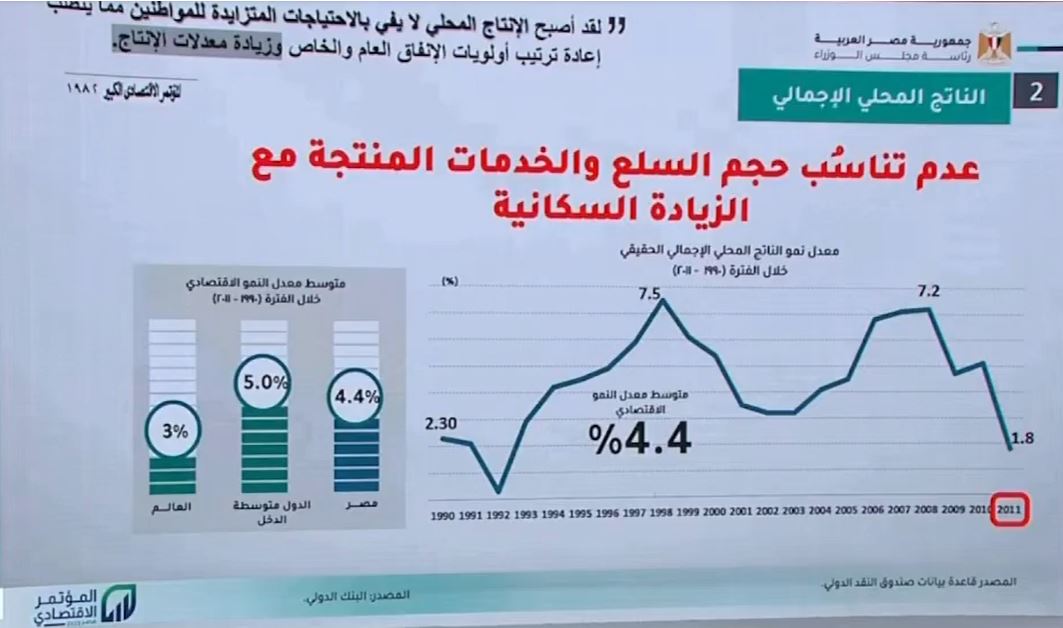 وأشار مدبولي، لتأثر الاقتصاد المصري على نحو لم يكن له مثيل بسبب اضطرابات 2011 و2013 والأحداث الجسيمة التي وقعت في ذلك الوقت.