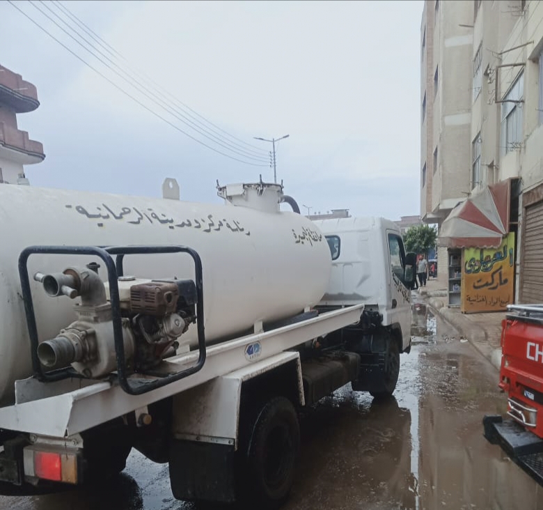 الدفع بمعدات الوحدات المحلية لرفع تراكمات مياه الأمطار بالبحيرة| صور