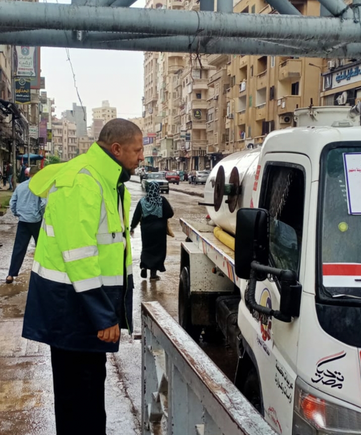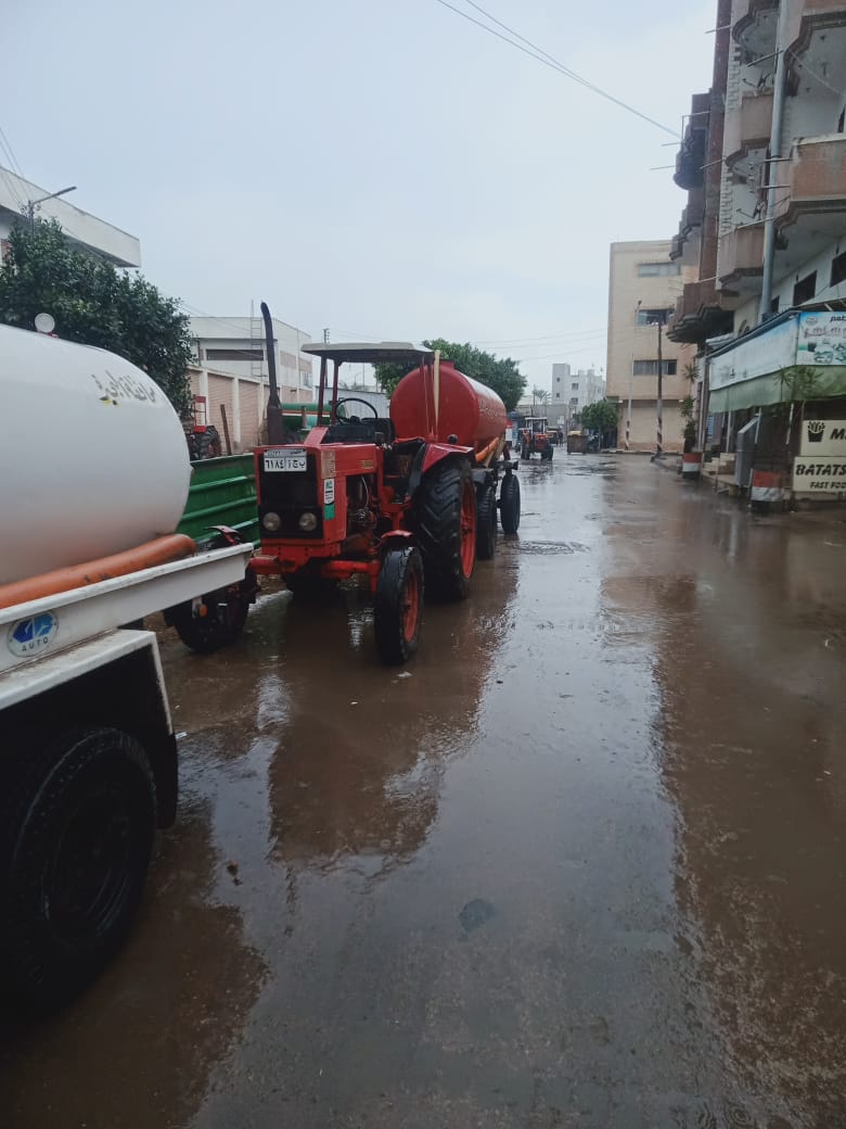 انتشار معدات الوحدات المحلية بمحافظة البحيرة لرفع تراكمات مياه الأمطار