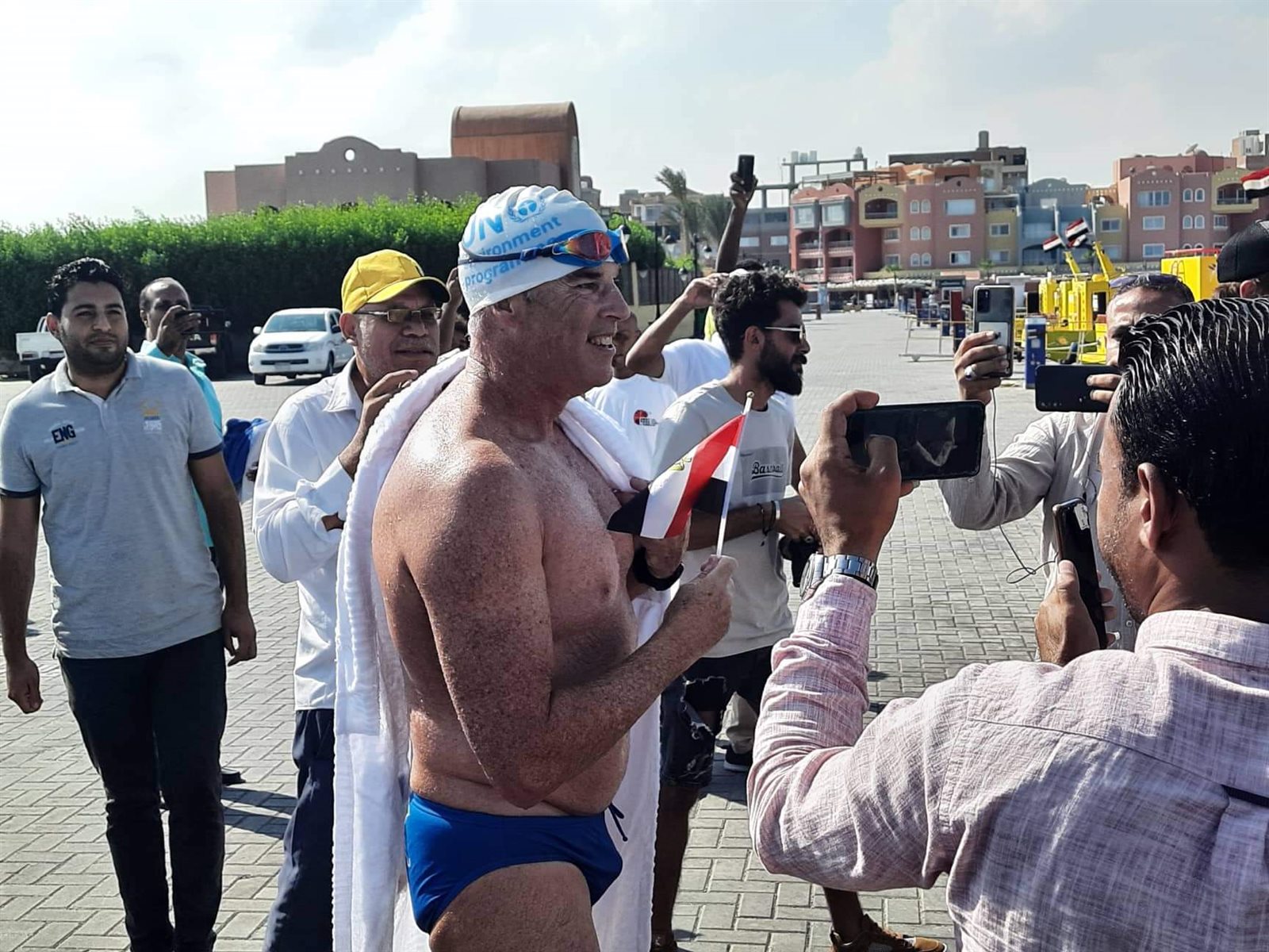 حاملًا علم مصر.. وصول البريطاني لويس بوغ للغردقة بعد 16 يوم سباحة من السعودية