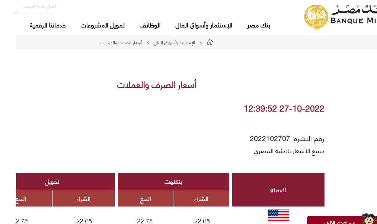 ارتفع سعر الدولار في البنك التجاري الدولي خلال التعاملات البنكية اليوم الخميس 27 أكتوبر 2022، ليُسجّل في عمليات الشراء ما قيمته 22.72 جنيه، وفي عمليات البيع ما قيمته 22.82 مقابل الجنيه المصري.