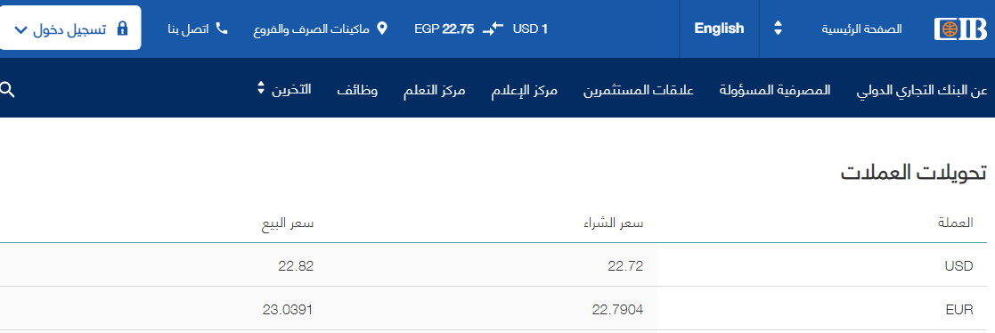 سعر الدولار اليوم في البنك التجاري الدولي CIB