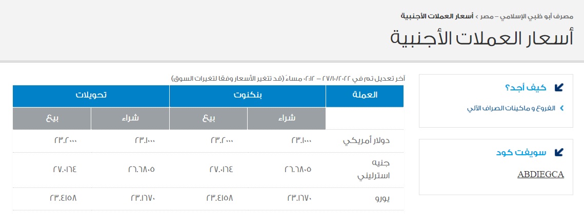سعر الدولار في بنك أبو ظبي الإسلامي
