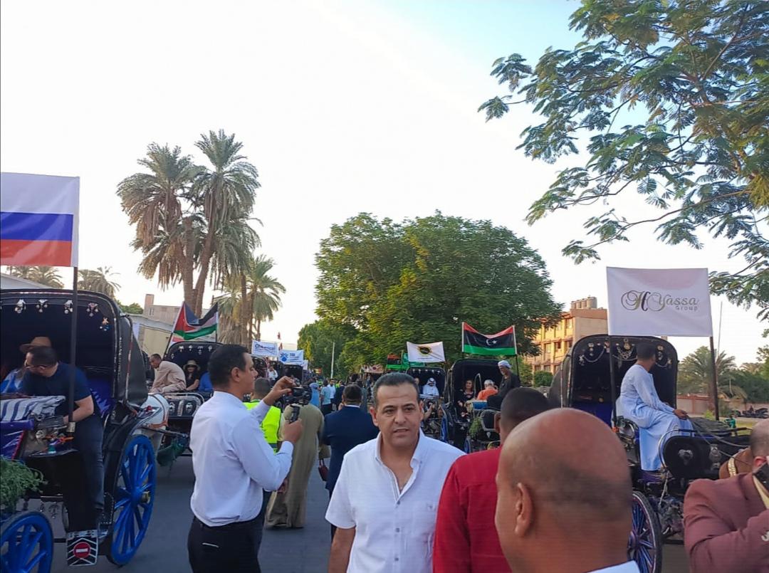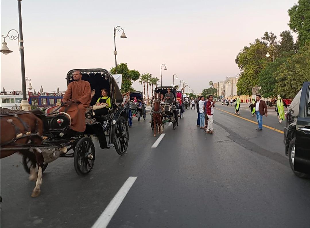 وانطلقت فعاليات مهرجان الأقصر بلدنا، على شرف الوفود الرسمية المشاركة بمؤتمر اتحاد المستثمرات العرب بالأقصر، حيث ضم المهرجان موكب كبير من الحناطير يضم حوالى 120 حنطورا، حاملين أعلام الدول المشاركة في المؤتمر وتجولوا على ضفاف نهر النيل بمصاحبة فرق الفنون الشعبية، وسط زغاريد وفرحة الأهالي.