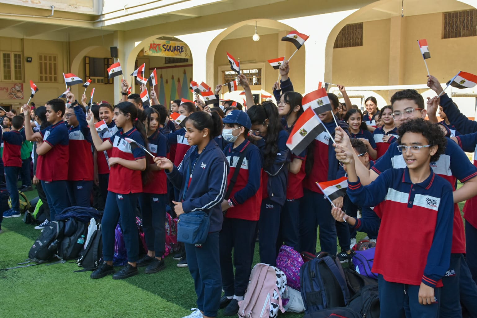 وتضمّن طابور الصباح؛ عددا من الفقرات التي تُجسد الأنشطة التربوية، وتهدف للتوعية والتعريف بمبادرات ومشروعات الدولة القومية، وفقرة اختبر معلوماتك والإذاعة المدرسية، وصولًا لتحية العلم، حيث أدى جميع الحضور النشيد الوطني بكل حماس.