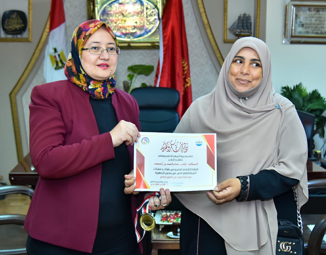 وصرحت وكيل الوزارة، بأن تكريم الطلاب جاء لمشاركتهم الإيجابية فى بطولة الجمهورية لتنس الطاولة عن العام 2022، والتي أقيمت بمنطقة أبو قير بمحافظة الإسكندرية، فى الفترة من 23 إلى 26 أكتوبر الماضي.