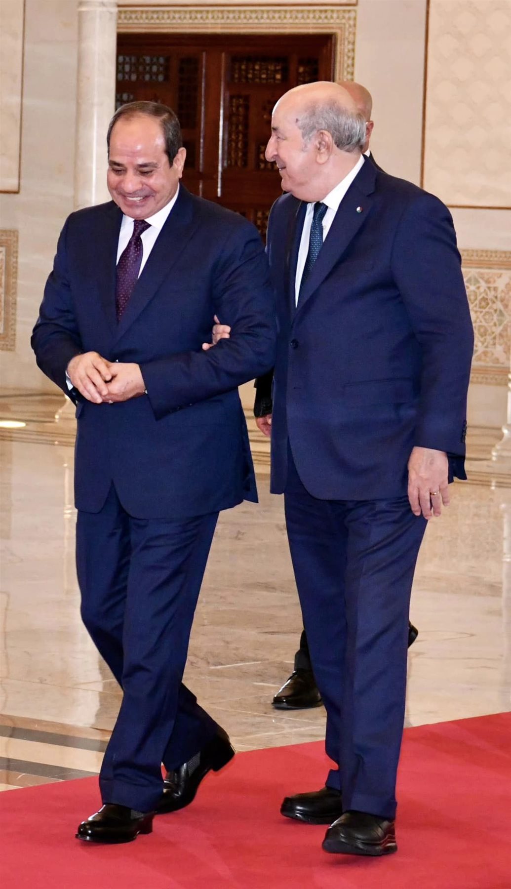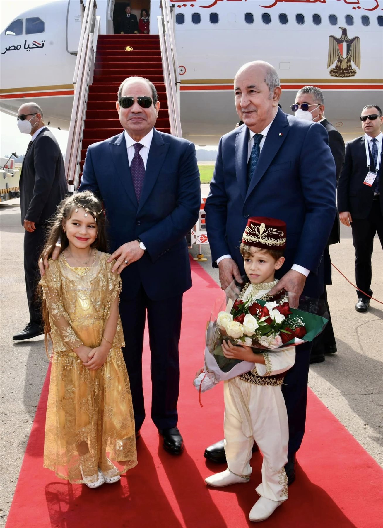 واستقبل الرئيس الجزائري عبد المجيد تبون، الرئيس السيسي، بالورود وعزف النشيد الوطني لكل من الجزائر ومصر، كما استعرض الرئيسان تشكيلة من الحرس الجمهوري أدت لهما التحية الشرفية.