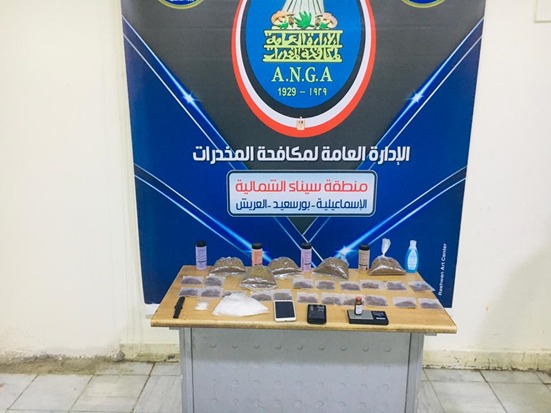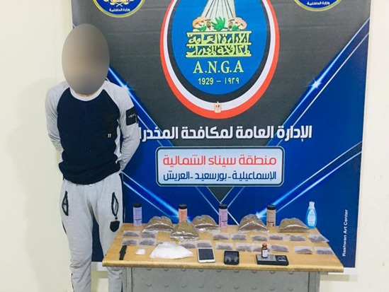 وفي مديرية أمن الإسماعيلية، فقد تم ضبط أحد الأشخاص له معلومات جنائية، لقيامه بالاتجار وإعادة تدوير مخدر الاستروكس، لمضاعفة كمياته وترويجه، وبحوزته كمية وزنت 1،500 كيلو جرام، كمية من مخدر الآيس، وكمية من المواد تستخدم في إعادة تدوير مخدر الإستروكس، سلاح أبيض، ميزان حساس، مبلغ مالي وهاتفي محمول، وضبط أحد الأشخاص حال تواجده بدائرة قسم شرطة ثان الإسماعيلية، وبحوزته كمية من مخدر الآيس الشابو، مبلغ مالي، هاتف محمول، سلاح أبيض، وميزان حساس.