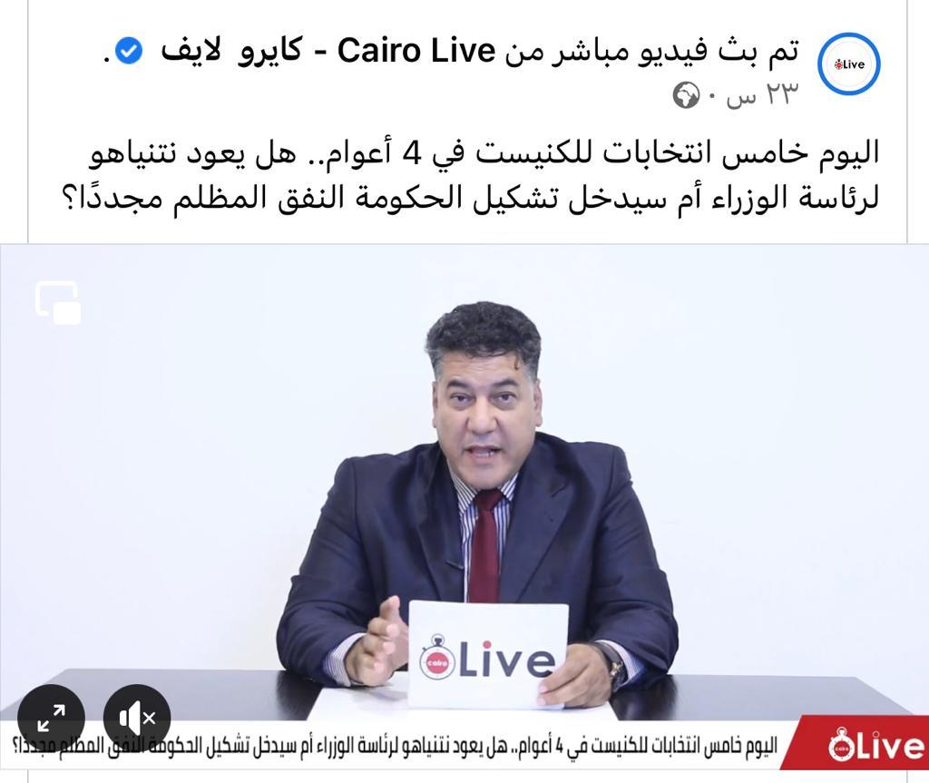 جاءت نتائج انتخابات الكنيست الإسرائيلي، لتؤكد مصداقية موقع القاهرة 24، ودقة تحليله للمشهد الإسرائيلي، فقد توقع المحلل السياسي للموقع إبراهيم الدرواي المتخصص في الصراع العربي - الإسرائيلي، قبل نهاية التصويت بساعات، فوز تحالف أحزاب اليمين بزعامة رئيس الوزراء الأسبق بنيامين نتنياهو، وهو التوقع الذي أيدته نتائج الانتخابات، وحصد هذا التحالف 62 صوتا، مما يمهد الطريق أمام العودة السياسية لنتنياهو وتوليه فترة ولاية سادسة، في معدل قياسي لم تشهده السلطة بإسرائيل من قبل.