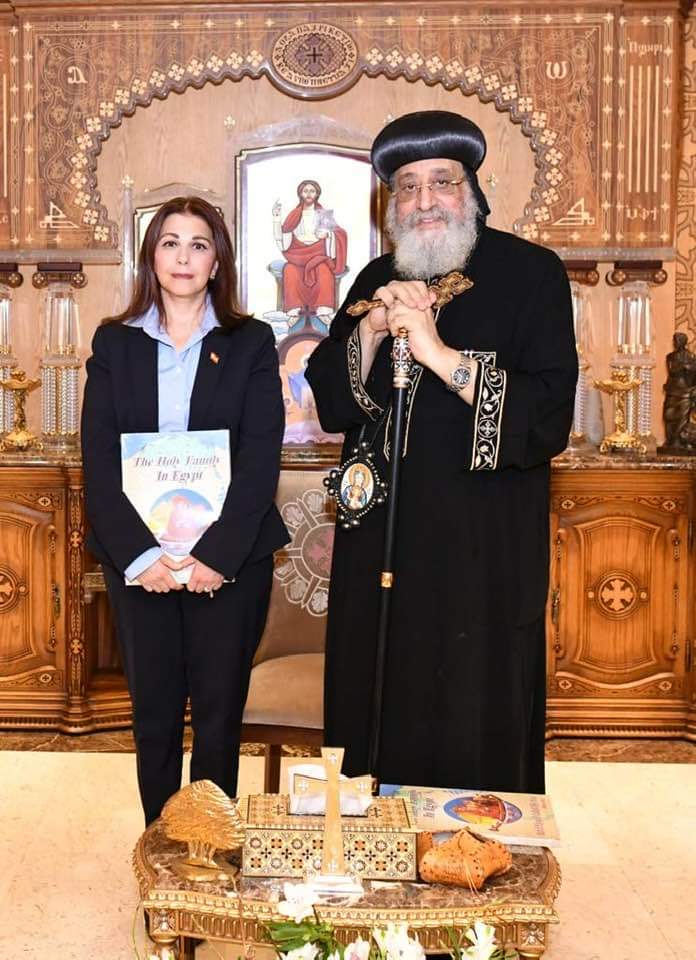 البابا تواضروس الثاني يستقبل الفنانة ماجدة الرومي بالمقر البابوي