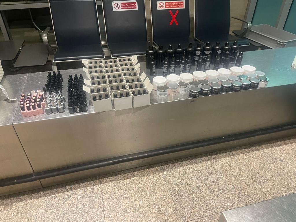 إحباط محاولتي تهريب 28 هاتف محمول و359 عبوة مستحضرات تجميل مع راكبتين بمطار القاهرة