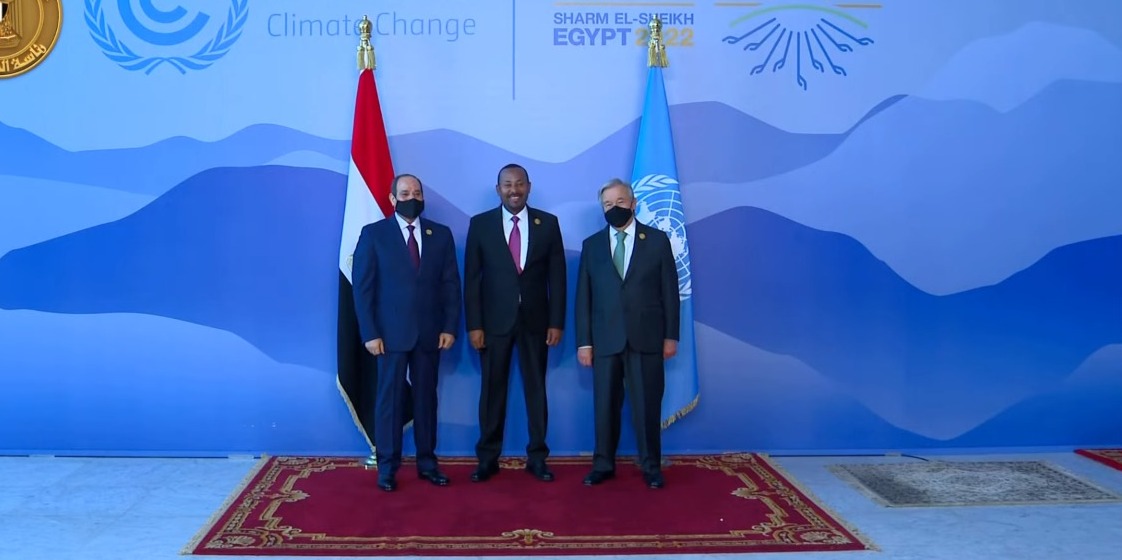 استقبل الرئيس عبد الفتاح السيسي، اليوم الاثنين، رئيس الوزراء الإثيوبي آبي أحمد، بمقر انعقاد قمة المناخ في مدينة شرم الشيخ، برفقة الأمين العام لمنظمة الأمم المتحدة أنطونيو جوتيريش.