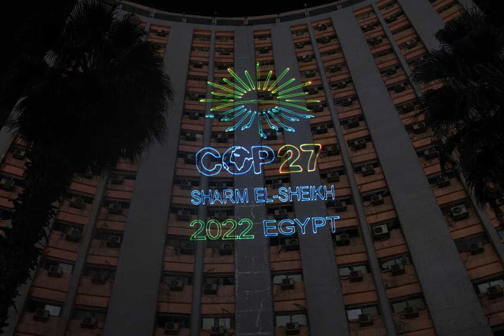 مبنى وزارة الشباب والرياضة يتزين بشعار قمة المناخ COP27 │ صور