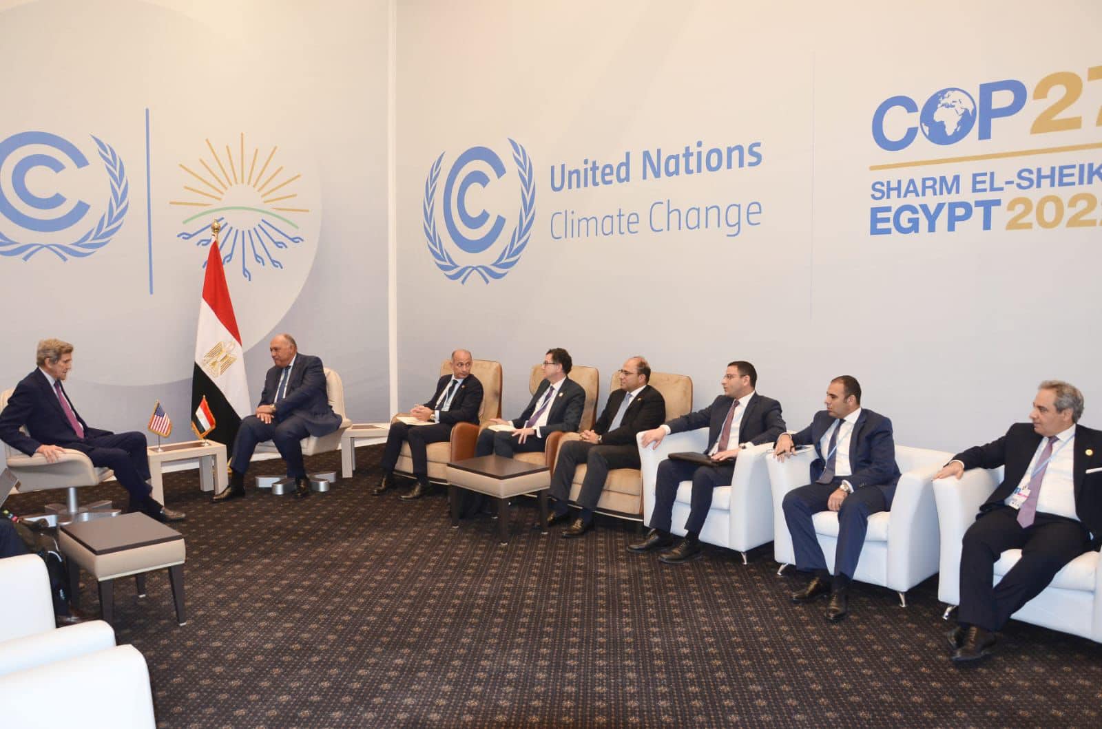 استقبل سامح شكري وزير الخارجية رئيس الدورة 27 لمؤتمر أطراف اتفاقية الأمم المتحدة الإطارية لتغير المناخ COP27 اليوم الخميس، جون كيري المبعوث الرئاسي الأمريكي الخاص للمناخ.