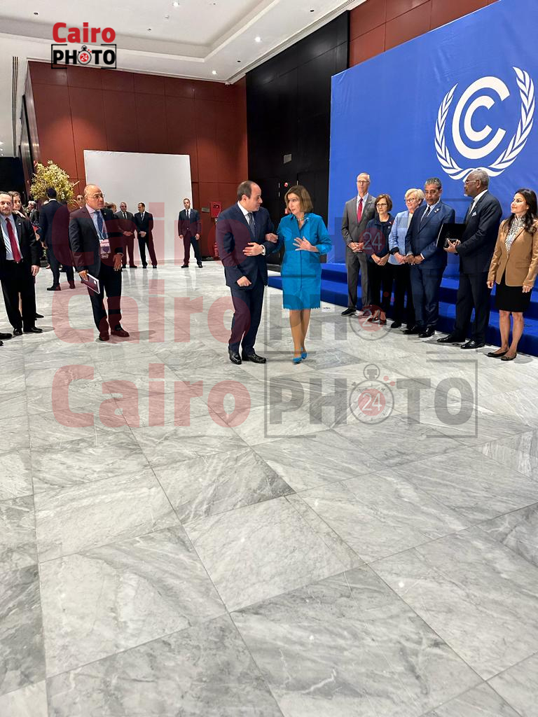 وظهر الرئيس عبد الفتاح السيسي ونانسي بيلوسي متعانقي اليد أثناء الجولة التفقدية في فعاليات قمة المناخ cop27.