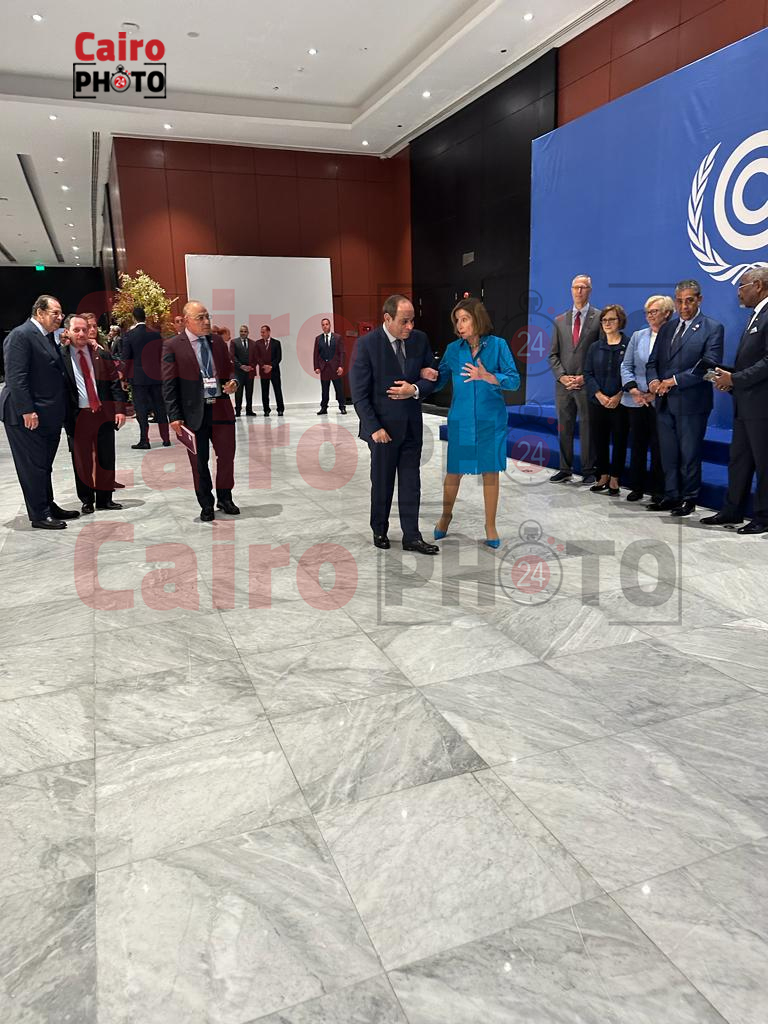 متشابكي الأيدي.. الرئيس السيسي يصطحب نانسي بيلوسي في جولة ودية عقب وصولها للمشاركة في COP27