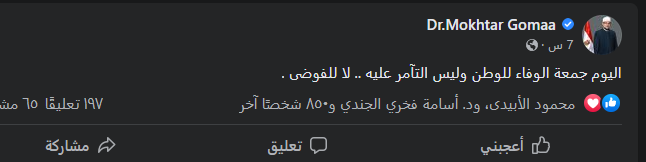 وجاء ذلك خلال منشور كتبه الدكتور محمد مختار جمعة، وزير الأوقاف، عبر صفحته الرسمية بموقع التواصل الاجتماعي، فيسبوك.