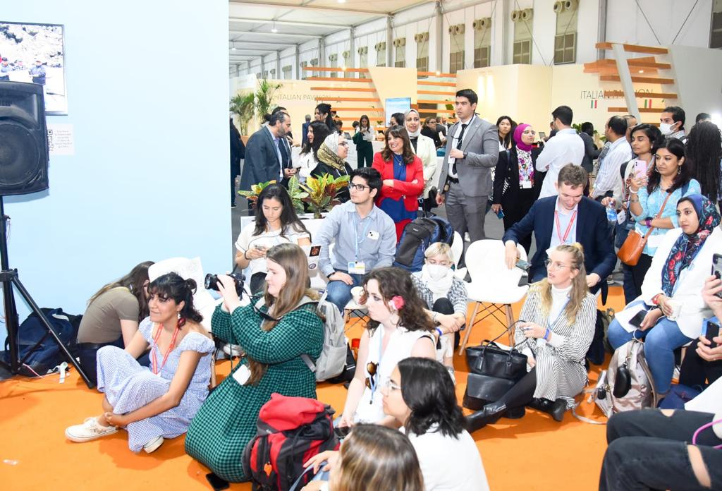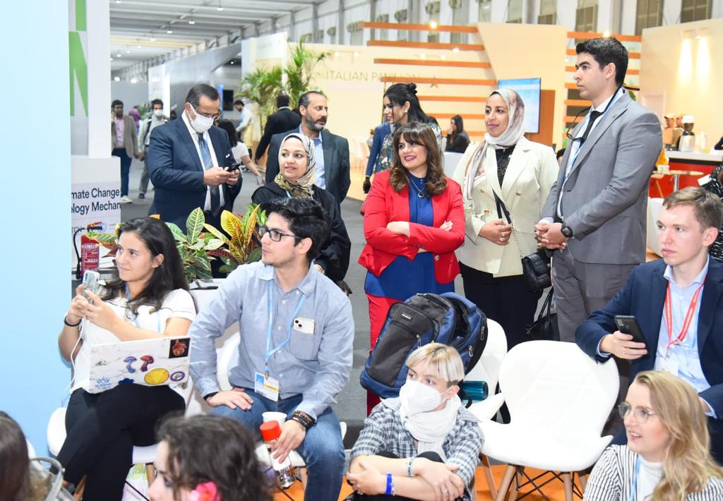 وأكملت: نطمح لعمل مجلس من شباب الباحثين في مختلف التخصصات لخدمة أهداف مصر للتنمية المستدامة، وإشراكهم في خطط التطوير المستقبلية، مؤكدة أنه بالعلم وحده نستطيع أن ننطلق للأفضل، ولدينا عقول قادرة على المنافسة في كل المجالات ونقل الخبرة إلى الوطن، مشيرة إلى أن تصميم الجناح المصري جاء بصورة تجسد رسالة مصر للعالم من وراء هذا المؤتمر، من خلال الإشارة إلى علاقة الإنسانية بالطبيعة في تاريخ مصر القديم والحديث، وتم تنفيذ الجناح كله من الزجاج، والمواد المُصنعة محليًا، وجميعها صديقة للبيئة، وبتصميمات مستوحاة من تاريخ وحضارة مصر عبر العصور، ورموز معمارية من تاريخ مصر وتراثها، لإيصال رسالة بحضارة مصر وتاريخها.