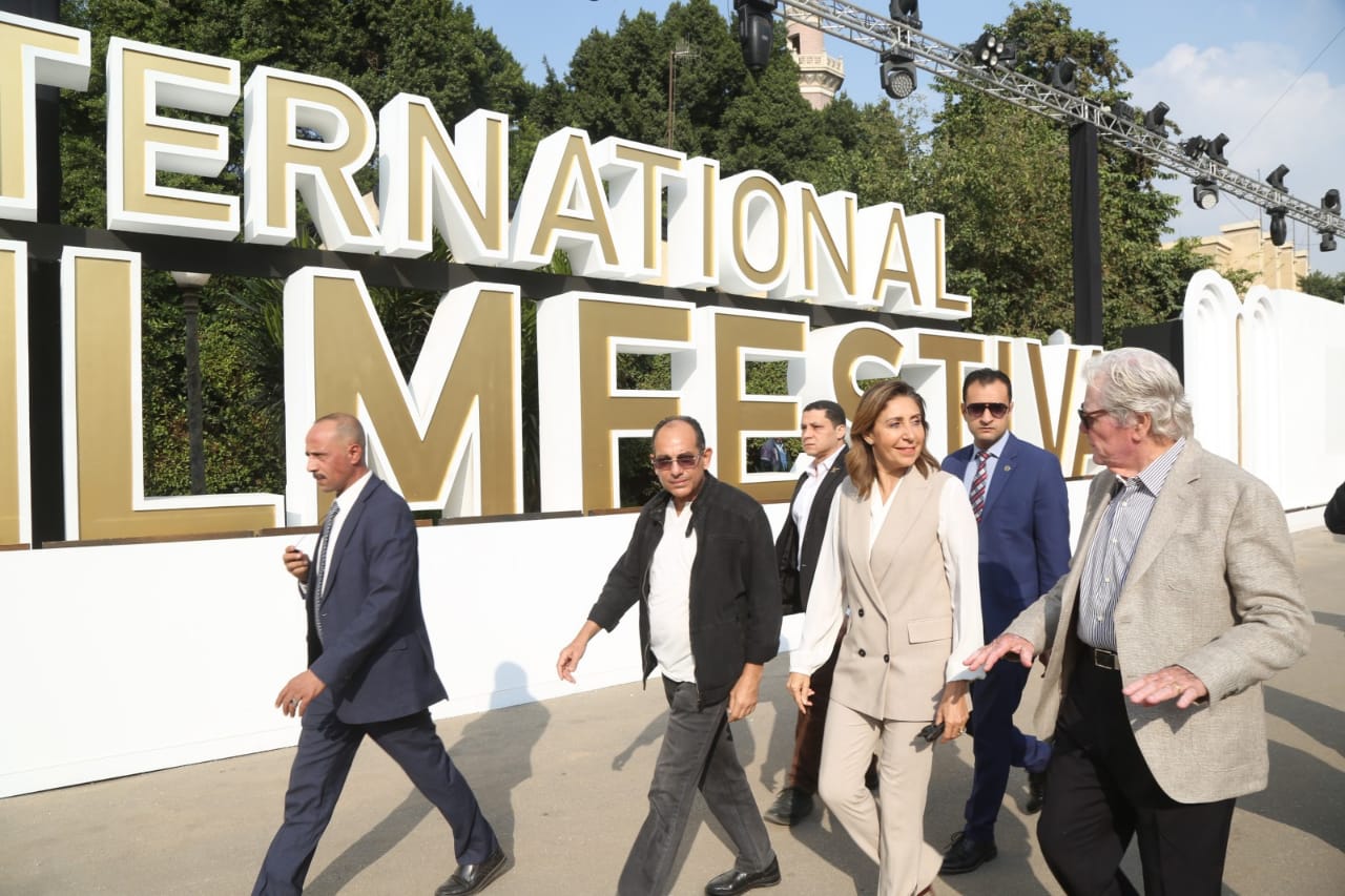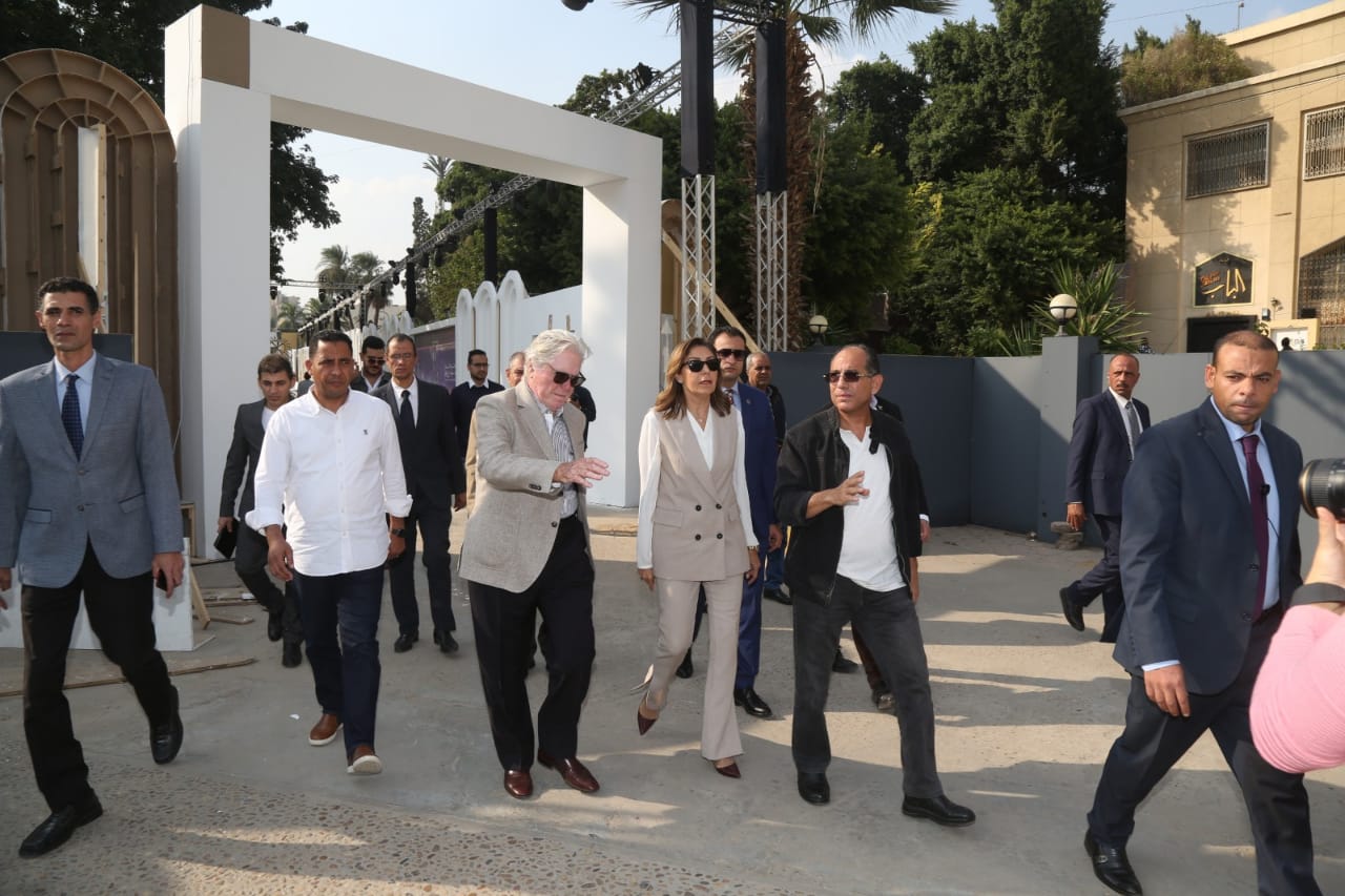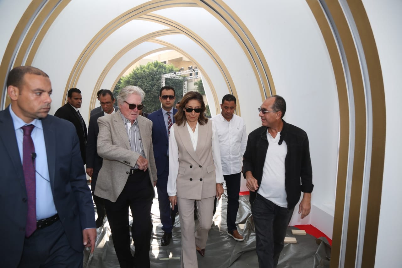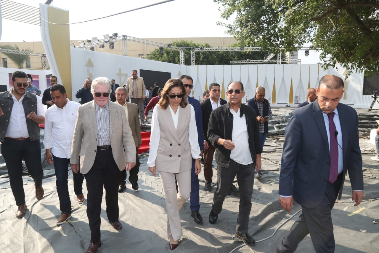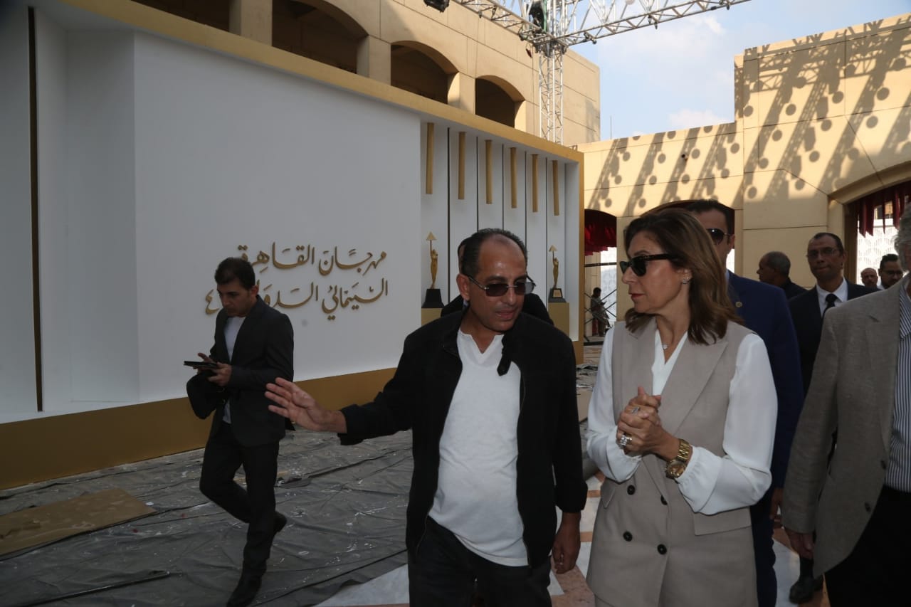 وزيرة الثقافة والفنان حسين فهمي يتفقدان اللمسات النهائية لتجهيزات افتتاح مهرجان القاهرة السينمائي الدولي
