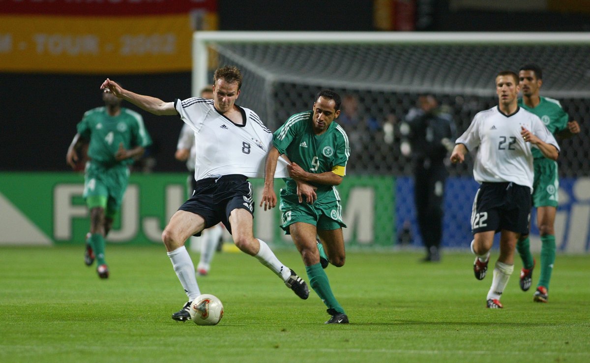 وفي مونديال كوريا واليابان 2002، وقع المنتخب السعودي في مجموعة ضمت بجانبه منتخبات ألمانيا وأيرلندا والكاميرون، وواجه المنتخب السعودية نظيره الألماني في الجولة الأولى وتعرض للهزيمة 8-0.