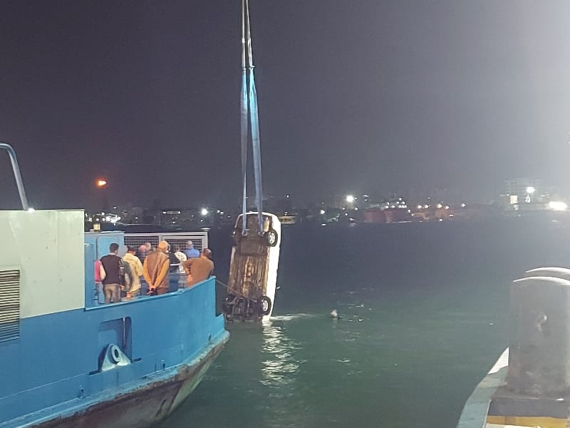 انتشال جثة سائق سيارة سقطت بالمجرى الملاحي للقناة في بورسعيد | صور
