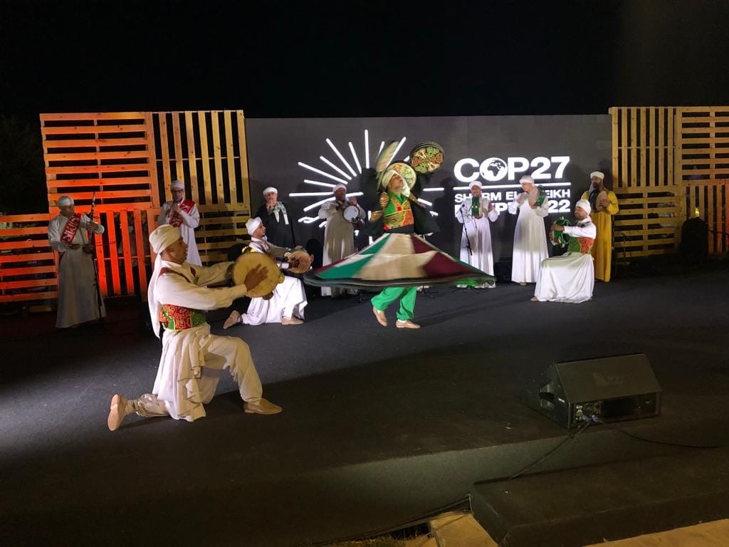 كذلك استمرت الفعاليات الفنية التي تُقدمها الهيئة العامة لقصور الثقافة، برئاسة الفنان هشام عطوة، بفرق الفنون الشعبية التابعة لها، والتي تشهد حضورًا وتفاعلًا مكثفًا من ضيوف مصر بقمة المناخ.