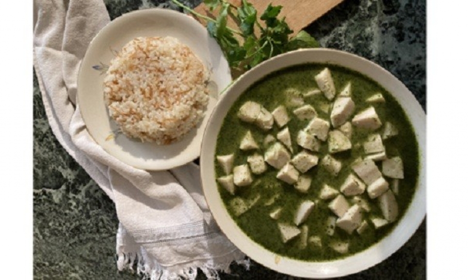 - يقدم مع الأرز الأبيض وقطع اللحم المسلوقة.
