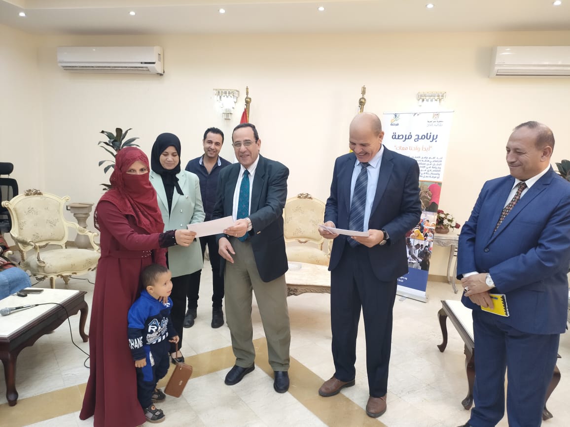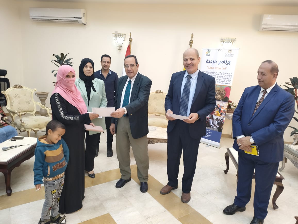جاء ذلك خلال تسليم رؤوس الأغنام لمستفيدي برنامج تكافل وكرامة، ضمن برنامج التمكين الاقتصادي لوزارة التضامن الاجتماعي فرصة، وذلك بحضور العميد مصطفى محمد مصطفى رئيس الادارة المركزية لمكتب المحافظ، المحاسب علي غيط مدير عام التضامن الاجتماعى، الدكتورة عبير حجاب مدير عام مديرية الطب البيطري.