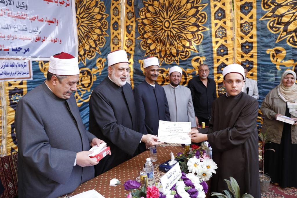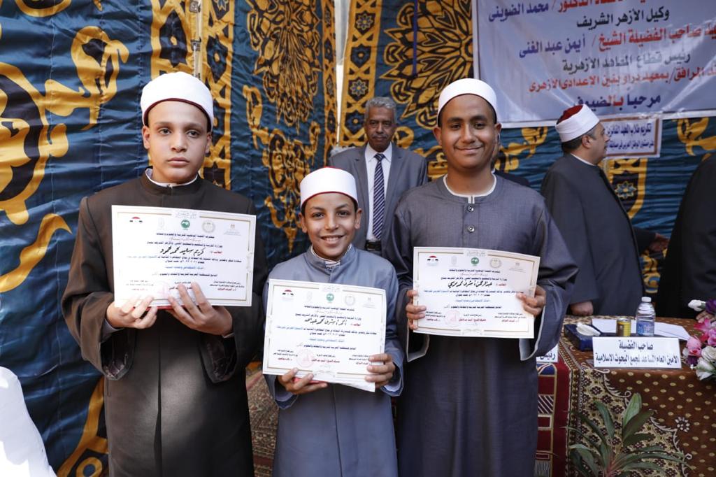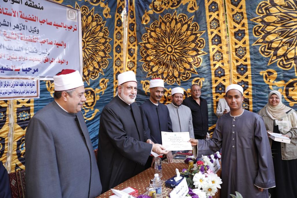 ونقل وكيل الأزهر تحيات فضيلة الإمام الأكبر للطلاب الفائزين وأسرهم ومعلميهم، مؤكدا حرصه على القدوم إلى محافظة أسوان ومدينة دراو، تقديرا لإنجازهم، متمنيًا لهم دوام التميز والتفوق، موصيًا جميع طلاب المعهد أن يجتهدوا حتى يكونوا خير خلف لمن سبقوهم بالتميز والنجاح، وأن يكونوا عونا لأمتهم ووطنهم.