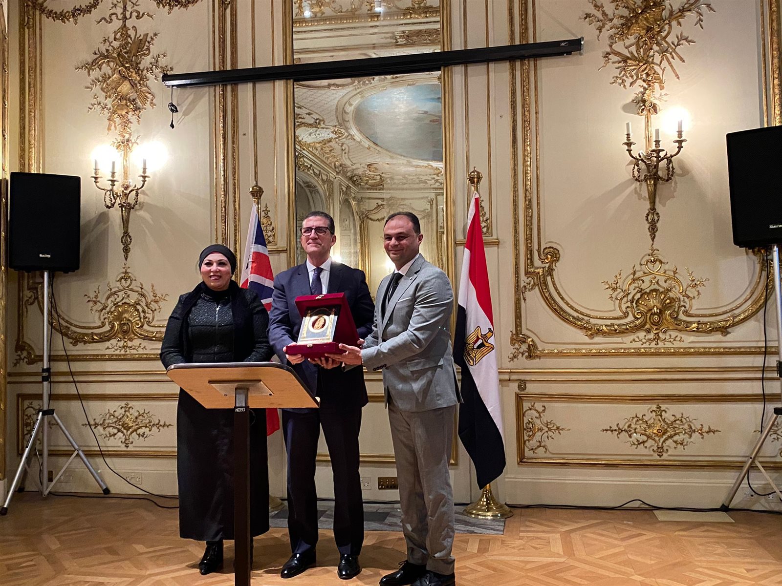 وقدم مدير الفرقة محمد صالح، بالنيابة عن اللواء عادل الغضبان محافظ بورسعيد درع المحافظة، تكريما للمجهود الذي يقوم به السفير شريف كامل ودرع آخر للدكتورة رشا كمال تكريما للدور الذي تقوم به لنشر الثقافة والفنون المصرية في المملكه المتحدة.
