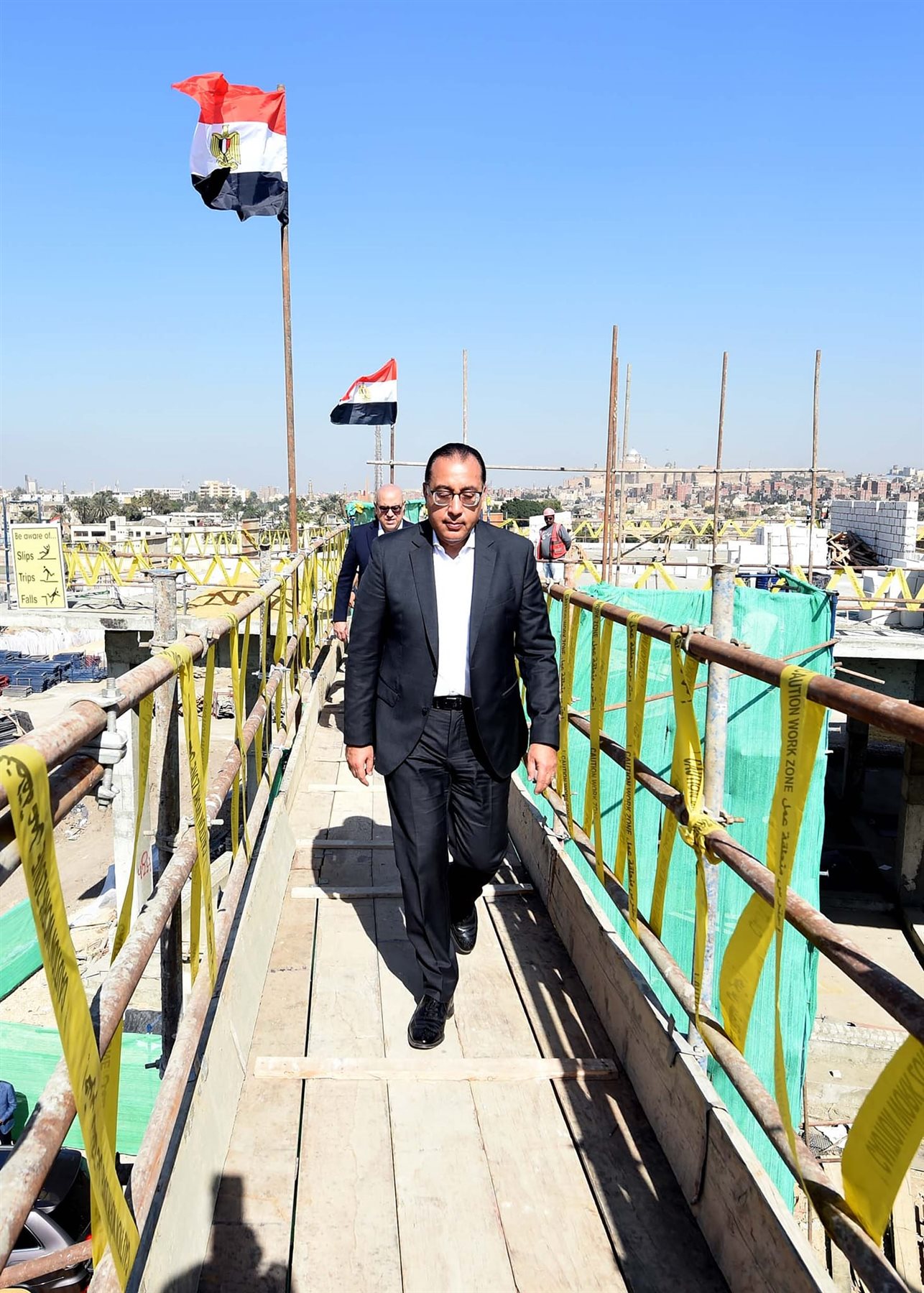 ورافقه الدكتور عاصم الجزار، وزير الإسكان والمرافق والمجتمعات العمرانية، واللواء خالد عبد العال، محافظ القاهرة، والمهندسة جيهان عبدالمنعم، نائب المحافظ، واللواء محمود نصار، رئيس الجهاز المركزي للتعمير، والمهندس خالد صديق، رئيس مجلس إدارة صندوق التنمية الحضرية، وعدد من مسئولي الوزارات والمحافظة والجهات المعنية واستشاري تنفيذ المشروع.