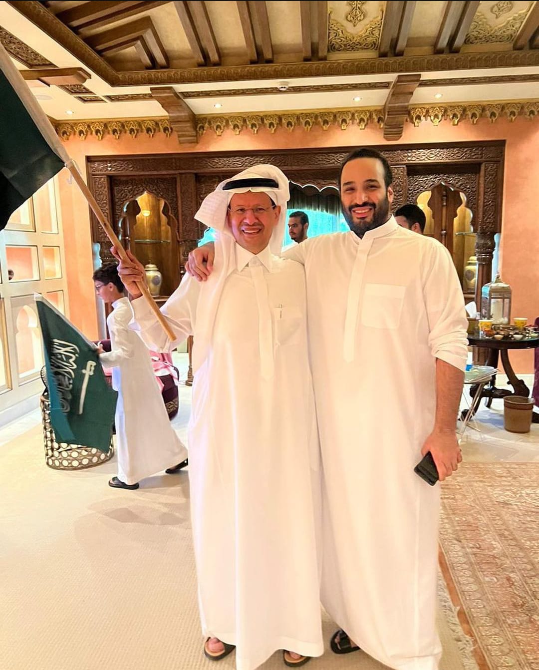 وحظيت احتفالات الأمير محمد بن سلمان ولي عهد المملكة باهتمام كبير، بعدما نشر شقيقه الأمير سعود بن سلمان، صورًا توضح احتفاله عقب انتهاء المباراة بالسجود والأحضان لمرافقيه، والتلويح بأعلام المملكة، وذلك على حسابه الرسمي على موقع التواصل الاجتماعي انستجرام.