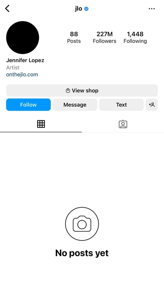 أثارت الفنانة العالمية جينيفر لوبيز، تساؤلات الملايين من مُتابعيها، بعد حذف جميع صورها، على حسابها الخاص بموقع انستجرام، ووضعت صورة سوداء مكان صورتها الشخصية.