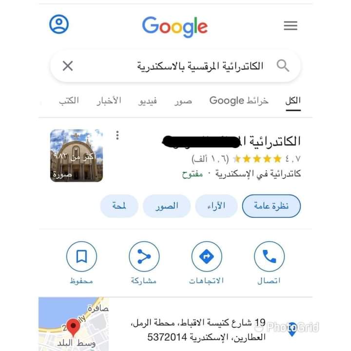 وأوضح رواد السوشيال ميديا، أنه عند كتابة اسم الكاتدرائية المرقسية بالإسكندرية، على جوجل وخاصة خرائط جوجل سيظهر بجانب الاسم وصف لا يتناسب مع بيت الله، وهو الكاتدرائية المرقسية بالإسكندرية، وبالفعل تم تدشين حملة إلكترونية موسعة على فيس بوك وتويتر لحذف هذا الوصف.