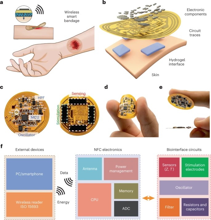 توضح دراسة الباحثين المجردة في الفئران، أن نظام العناية بالجروح لدي الضمادة يمكنه مراقبة مقاومة الجلد ودرجة الحرارة بشكل مستمر، وتقديم التحفيز الكهربائي كاستجابةً لبيئة الجرح.