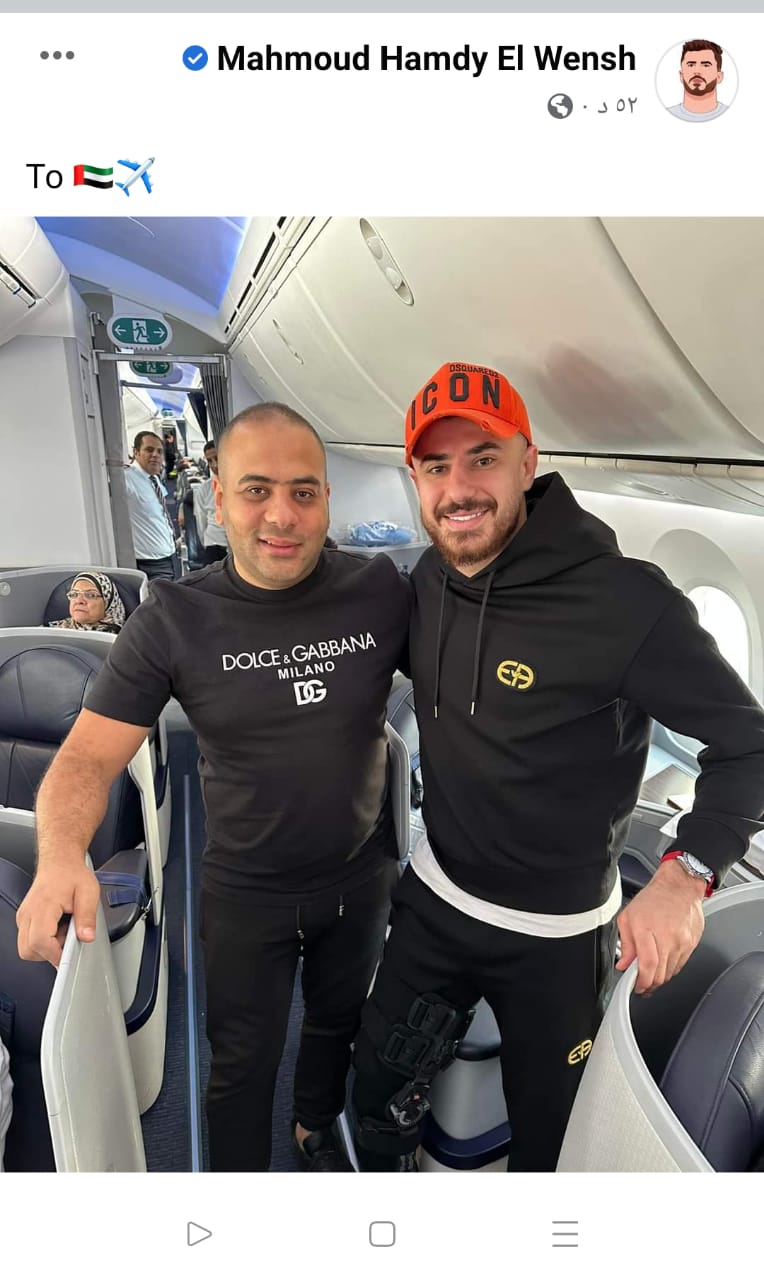 وسافر اللاعب منذ قليل، إلى الإمارات بصحبة وكيله، ليصاحبه في الأيام الأولى من رحلة التأهيل في الإمارات قبل العودة من جديد.