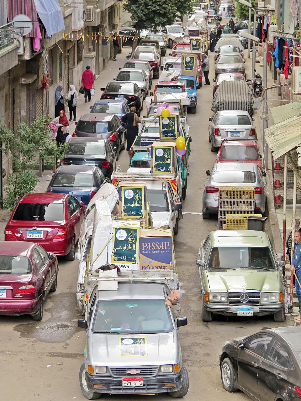 وجاب الموكب الشوارع الرئيسية بشبرا مصر، حيث تتابعت 51 سيارة، تحمل كل منهم الأجهزة الكهربائية من ثلاجات وغسالات وبوتجازات، فضلًا عن السجاد وفرش المطبخ، فيما تقدم الموكب عدد من العازفين بالمزمار والطبل البلدي، احتفالًا بهذه المناسبة التي تقام سنويًا منذ أعوام، حيث يعد هذا الموكب هو الخامس والعشرين الذي تقيمه اللجنة.