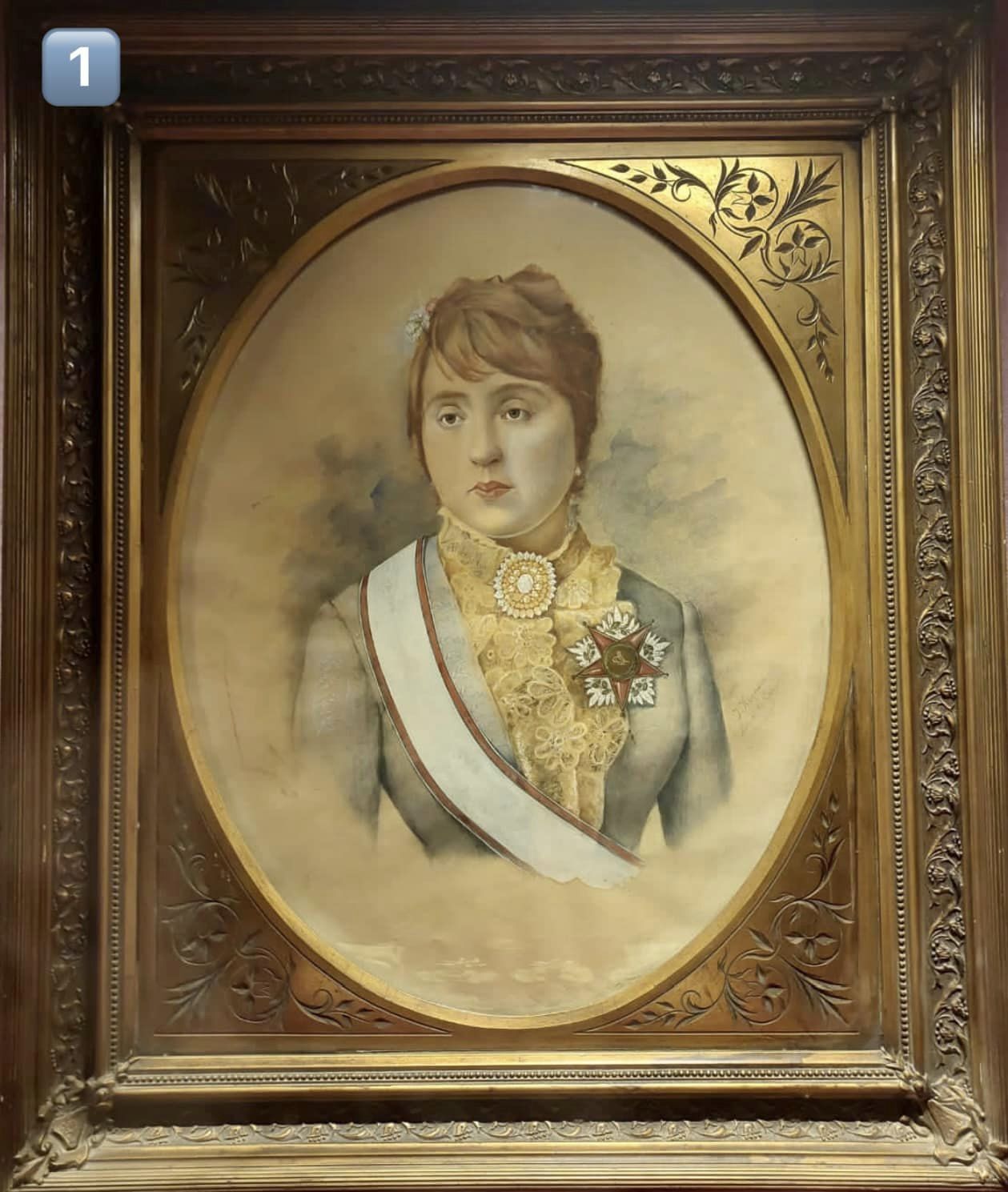 - صوره لإحدى أميرات الأسرة العلوية وهي تحمل على الجهة اليسرى من الصدر وسام رفيع المستوى، وصنعت القطعة من مواد الخشب، القماش، الزجاج، وكانت تعرض من قبل متحف قصر الجوهرة بالقلعة، وتعود إلى أسرة محمد علي 1805 - 1953، أي القرن 19م.