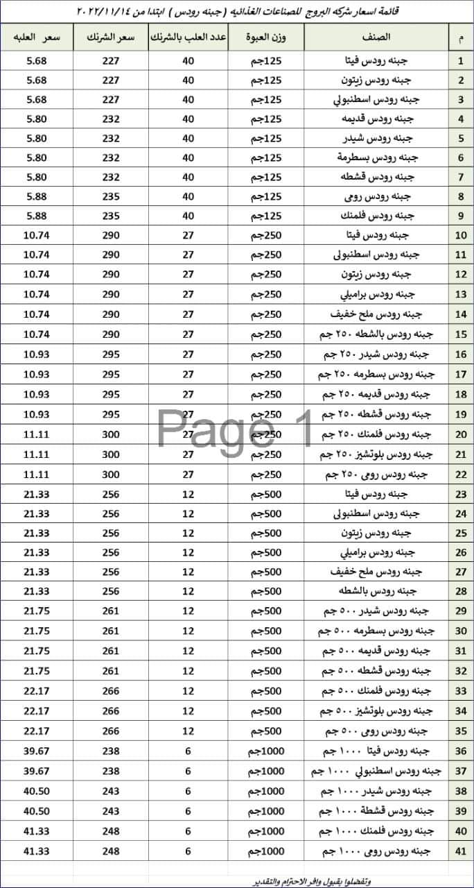 رفعت شركة البروج للصناعات الغذائية أسعار جبنة رودس في مصر، بنحو جنيه إلى جنيهان على أوزان علب الجبنة الشهيرة، بداية من اليوم الأربعاء.