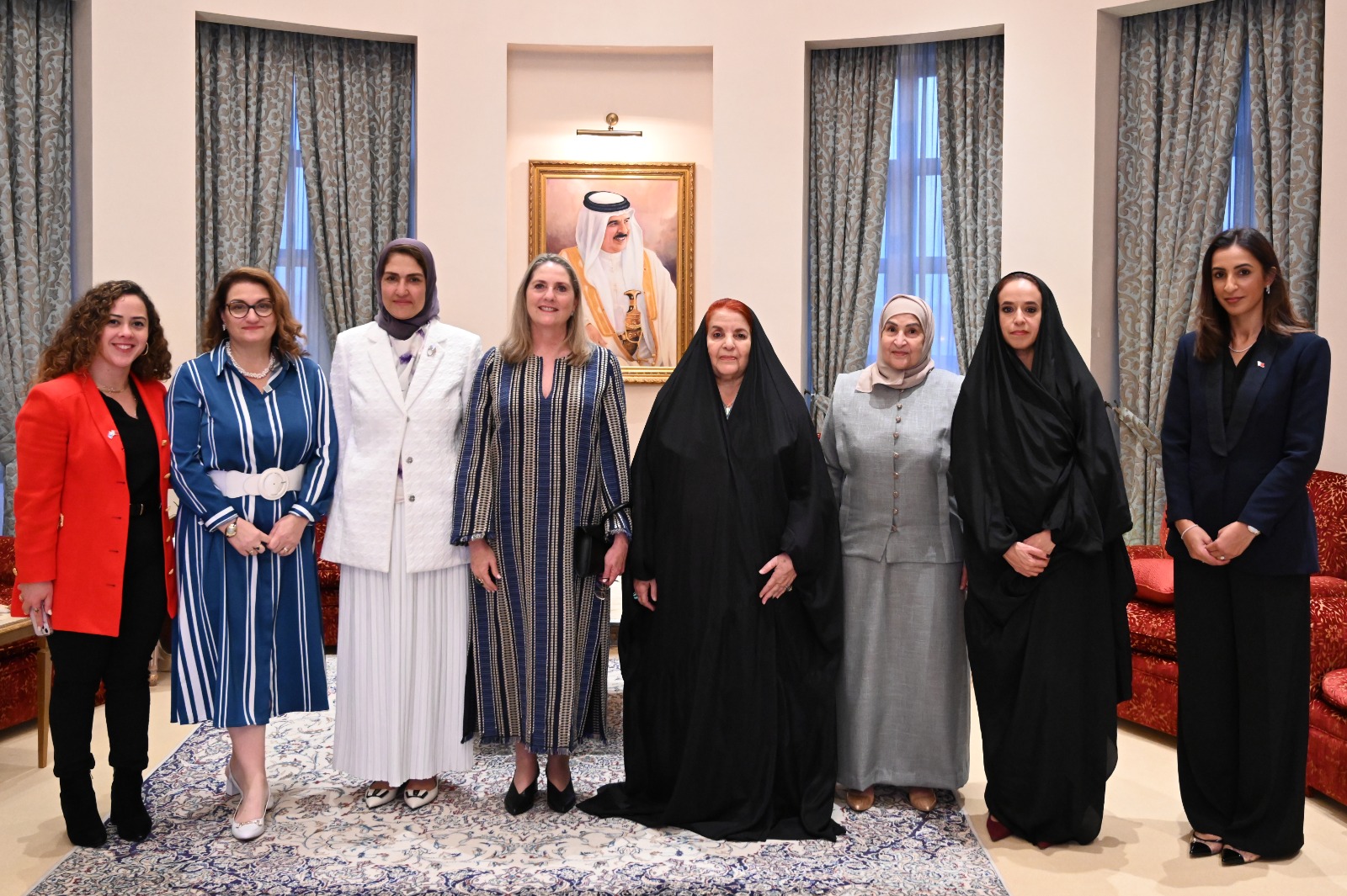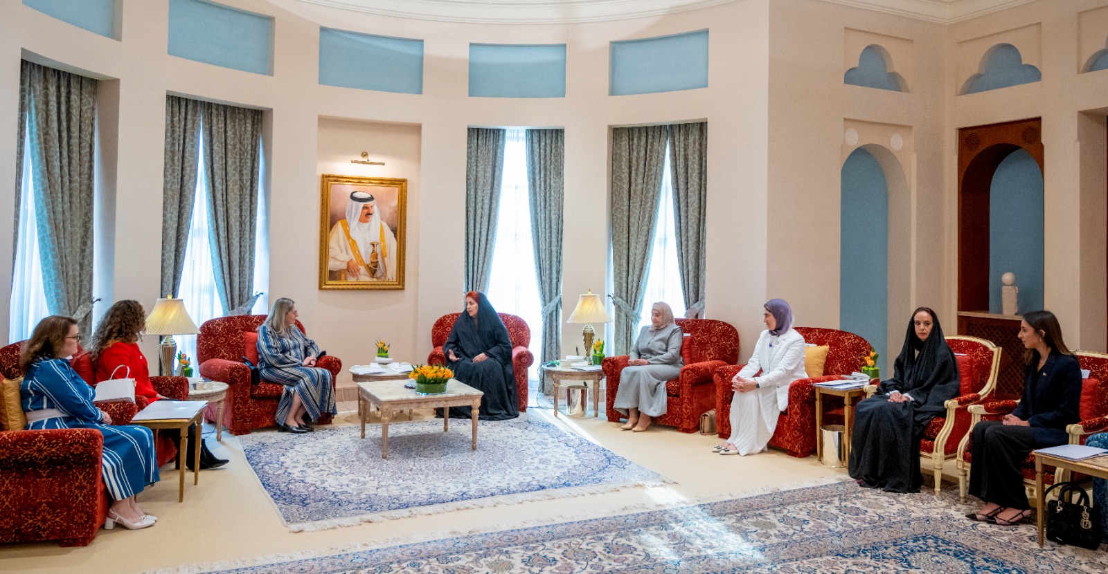وثمنت زوجة عاهل البحرين في مستهل الاجتماع الدور الفاعل لمملكة البحرين، بقيادة الملك حمد بن عيسى آل خليفة، في الحفاظ على الأمن والسلام في المنطقة لتنعم شعوبه بالرخاء والاستقرار، مشيرة إلى حرص المجلس الأعلى للمرأة على أن تلعب جميع النساء حول العالم دورًا أكبر في التوجهات العالمية ذات الصلة بالسلام والأمن والتنمية المستدامة.