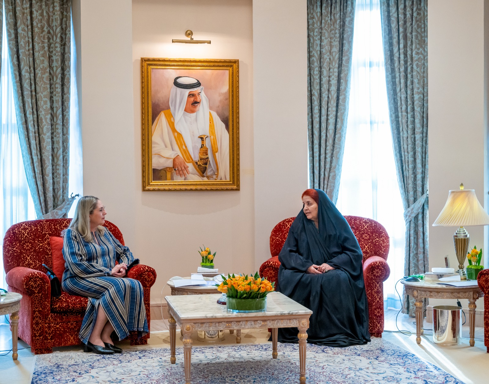 قرينة ملك البحرين تستقبل زوجة الرئيس الإسرائيلي| صور
