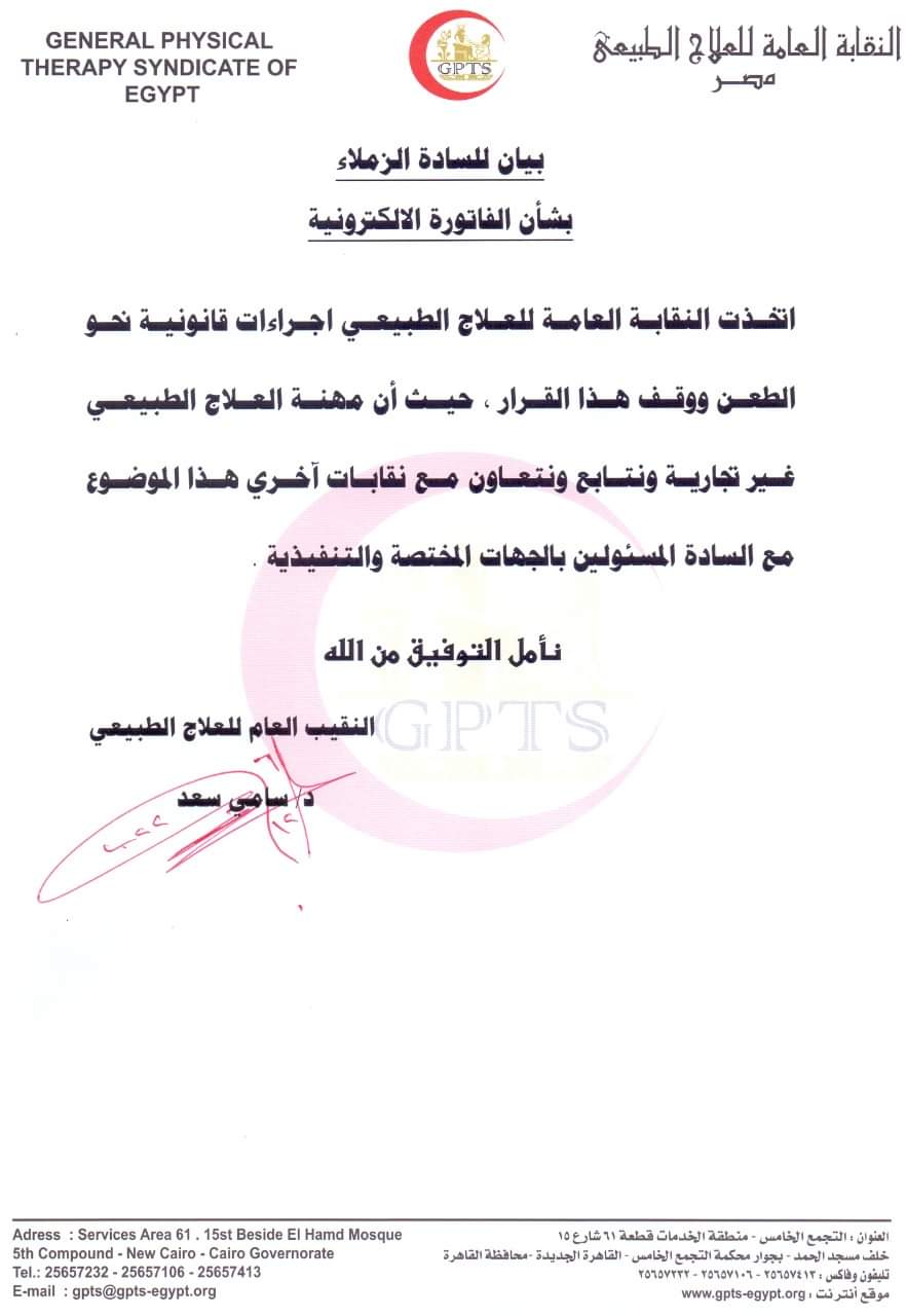 العلاج الطبيعي تطعن على قرار المالية بشأن تطبيق الفاتورة الإلكترونية | صورة