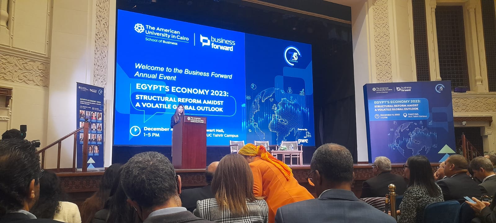 وشارك في المؤتمر السنوي لـ كلية إدارة الأعمال بالجامعة الأمريكية بالقاهرة، كل من هشام عز العرب، عضو مجلس الإدارة غير التنفيذي بالبنك التجاري الدولي، ومها صالح، خريجة الجامعة عام 2002 وخبيرة التجارة الخارجية.