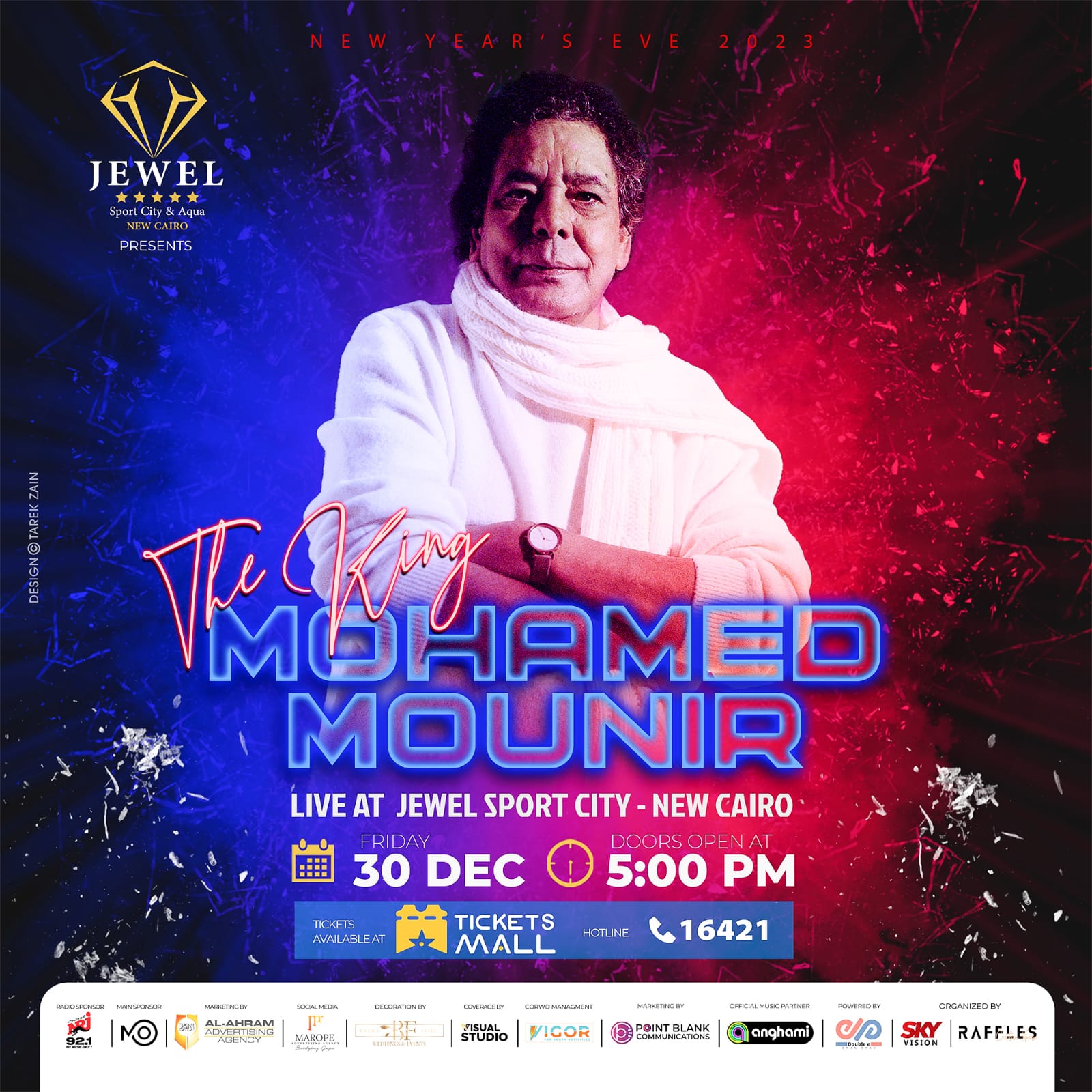 وكشفت الجهة المنظمة لحفل الكينج محمد منير في رأس السنة 2023 عن البوستر الدعائي الأول لـ حفل الكينج، والذي من المقرر إقامته داخل مول سبورت سيتي بالقاهرة الجديدة.