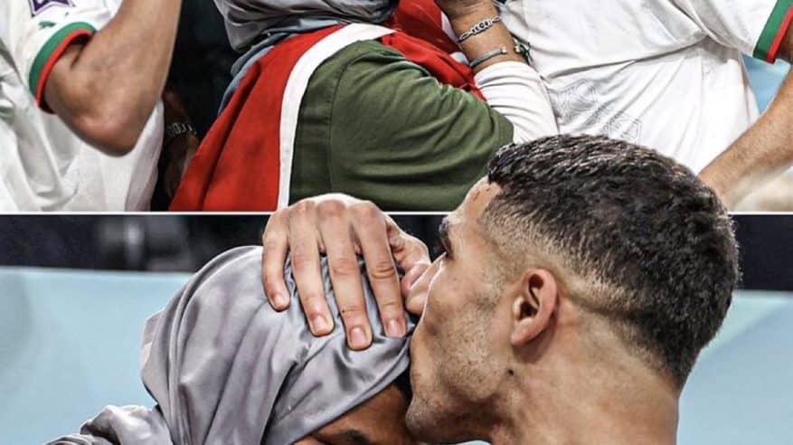 حرص نجم المنتخب المغربي أشرف حكيمي، على تقبيل والدته أمام كاميرات كأس العالم قطر 2022، خاصة بعد فوز منتخب بلاده على المنتخب الإسباني في دور الـ 16، حيث لم ينسى فضل والدته عليه، التي ساعدته في أن يكون من أشهر لاعبي كرة القدم في الوقت الحالي.