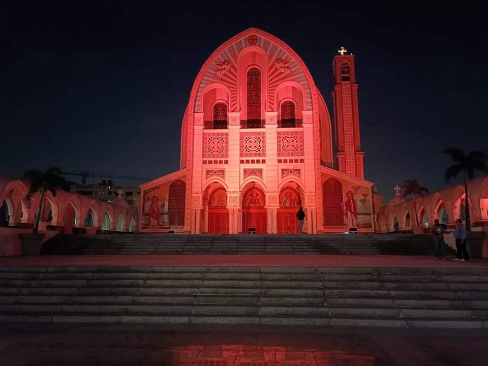 الكاتدرائية المرقسية بالعباسية تضيء باللون البرتقالي