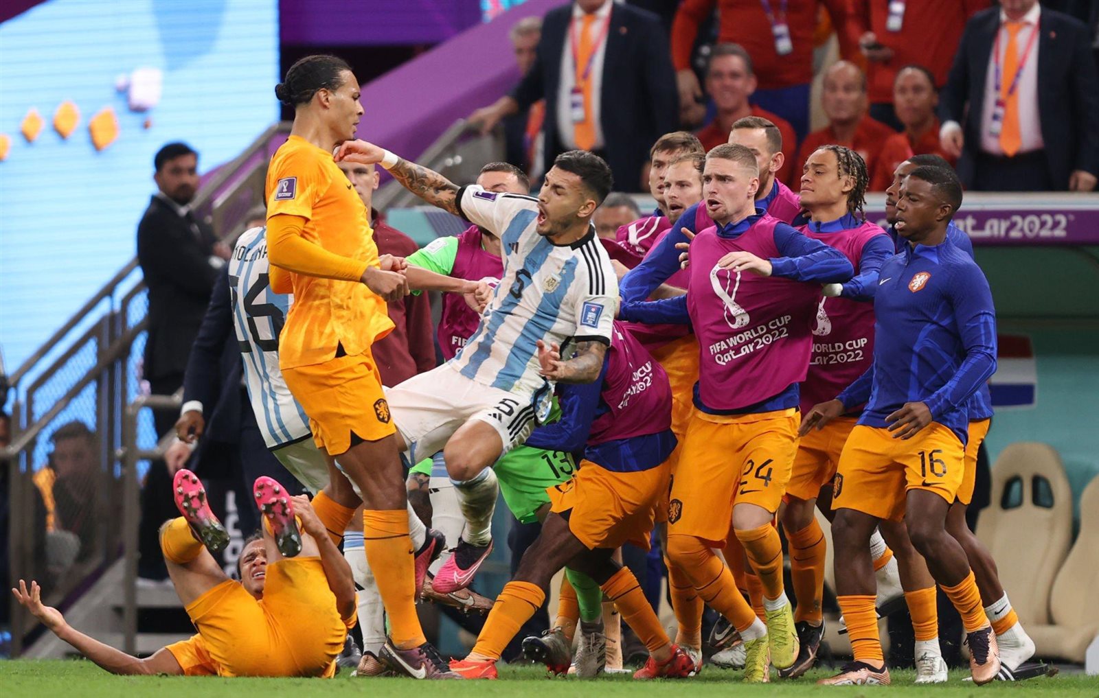 شهدت الدقيقة 90 من المباراة اشتباكات بين لاعبي المنتخبين بعد أن سدد لياندرو باريديس لاعب منتخب الأرجنتين الكرة في دكة بدلاء منتخب هولندا، ليحصل اللاعب على بطاقة صفراء.