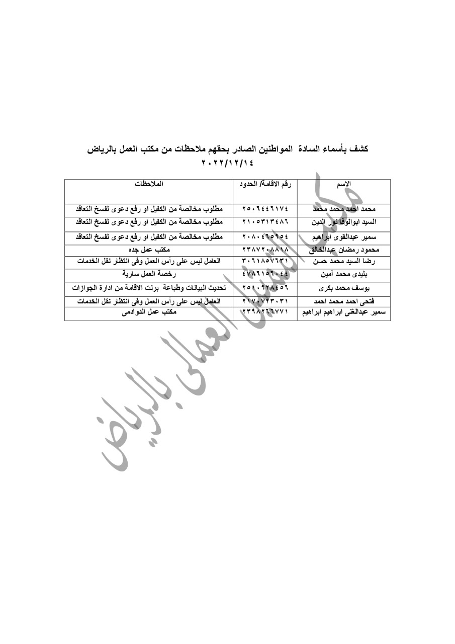 التمثيل العمالي بالرياض وجدة: تسهيل إجراءات عودة عمال مصريين انتهت إقامتهم │أسماء