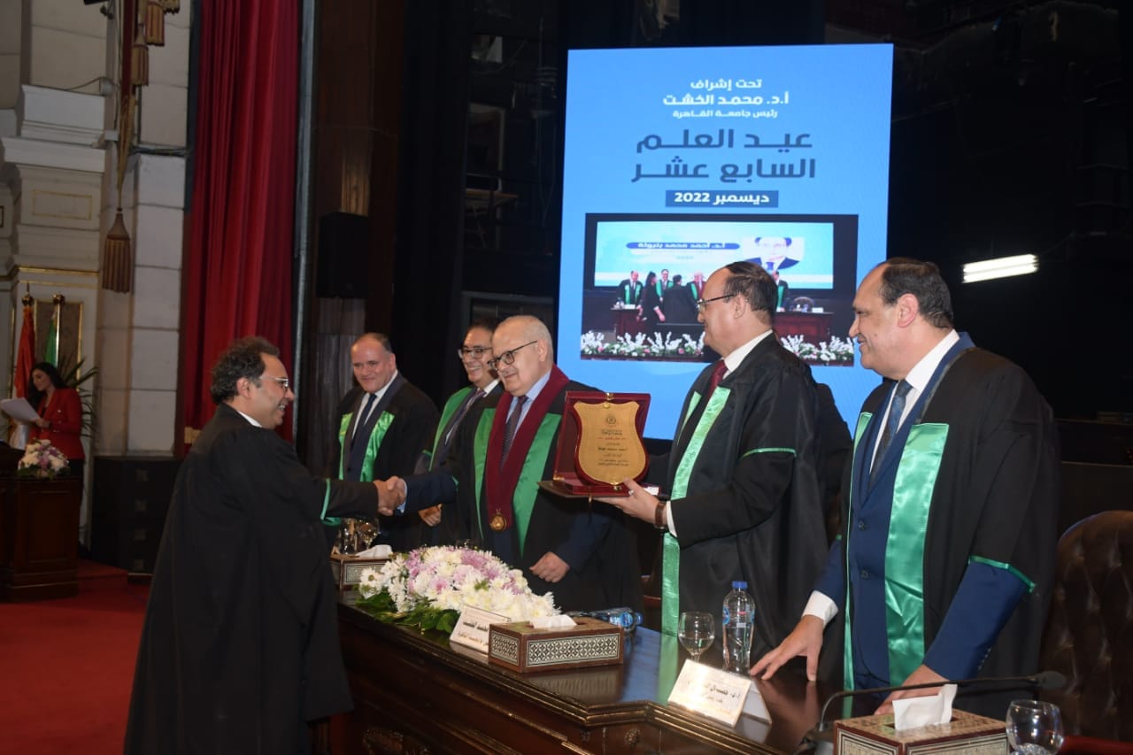 جاء ذلك خلال احتفالية عيد العلم الـ17 التي أقامتها الجامعة أمس الثلاثاء بقاعة الاحتفالات الكبرى، برعاية الدكتور محمد عثمان الخشت رئيس الجامعة، حيث تم خلالها تكريم 140 شخصية من علماء جامعة القاهرة ومفكريها وباحثيها الحاصلين على جوائز الدولة والجامعة بأنواعها في مختلف المجالات العلمية، بحضور عدد من الوزراء والمحافظين وكبار الشخصيات العامة ورجال الدولة، ونواب رئيس الجامعة، وعمداء الكليات، وأعضاء هيئة التدريس، والطلاب.